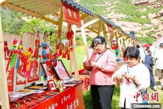 活動(dòng)現(xiàn)場(chǎng)的非遺文創(chuàng)展臺(tái)吸引市民游客目光。固原市委宣傳部供圖