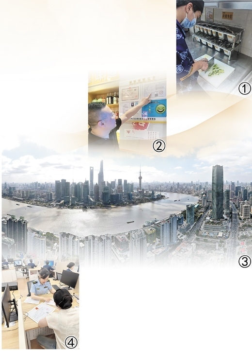 圖①:商戶正在制作“拍黃瓜”。本報記者 季覺蘇攝圖②:商戶展示新證照。 本報記者 張 洋攝圖③:空中俯瞰上海黃浦江兩岸。新華社記者 方 喆攝 圖④:企業(yè)工作人員在上海市閔行區(qū)市場監(jiān)管局政務(wù)服務(wù)窗口申請辦理食品經(jīng)營許可證。許雪蓮攝