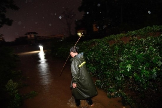 18日晚上,夜色深沉,一陣?yán)坐Q轟然響起,雨還是下了起來。抓起椅背上的雨衣,抖了抖上面的雨水,呂懷義又開始巡堤工作,銀色的雨幕中,河堤上成排的防汛隊伍清晰可見……(參與采寫:鄭家寶)