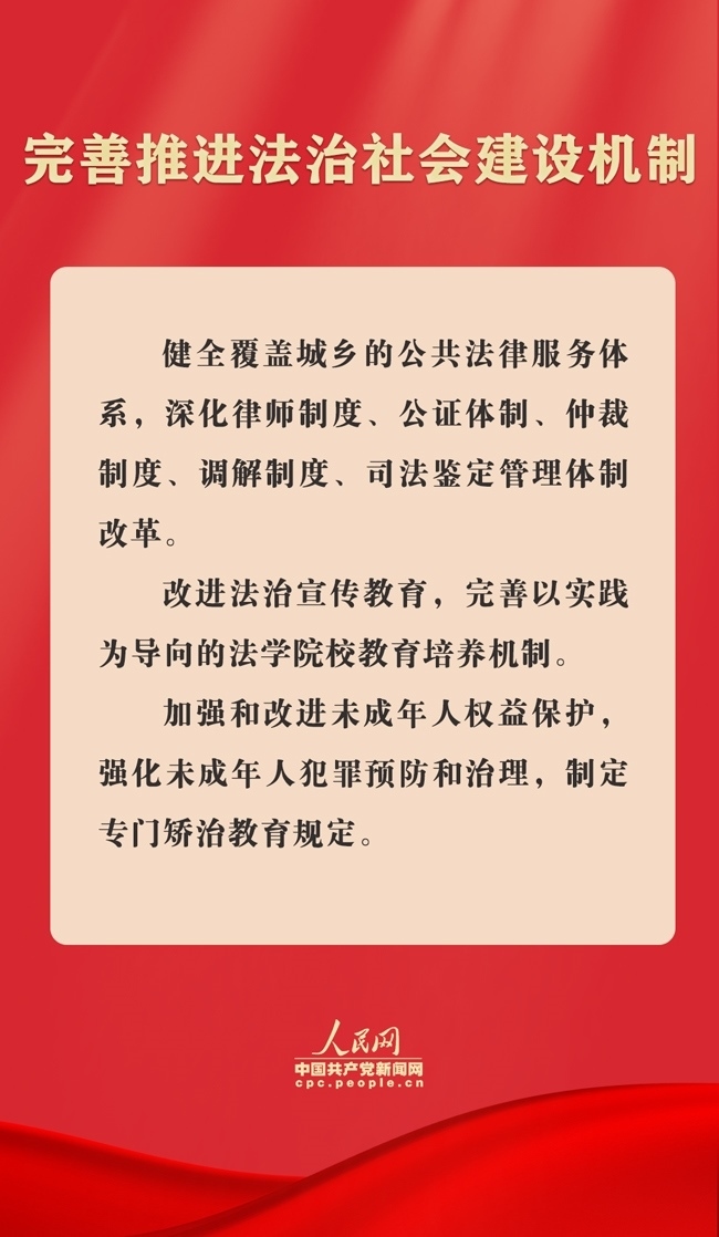 《決定》明確,法治是中國式現(xiàn)代化的重要保障。必須全面貫徹實施憲法,維護憲法權威,協(xié)同推進立法、執(zhí)法、司法、守法各環(huán)節(jié)改革,健全法律面前人人平等保障機制,弘揚社會主義法治精神,維護社會公平正義,全面推進國家各方面工作法治化。