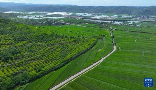 這是寧夏固原市隆德縣沙塘鎮(zhèn)境內(nèi)的一條柏油農(nóng)村公路(7月26日攝,無(wú)人機(jī)照片)。