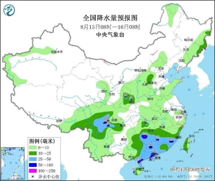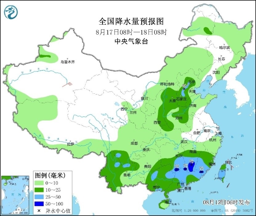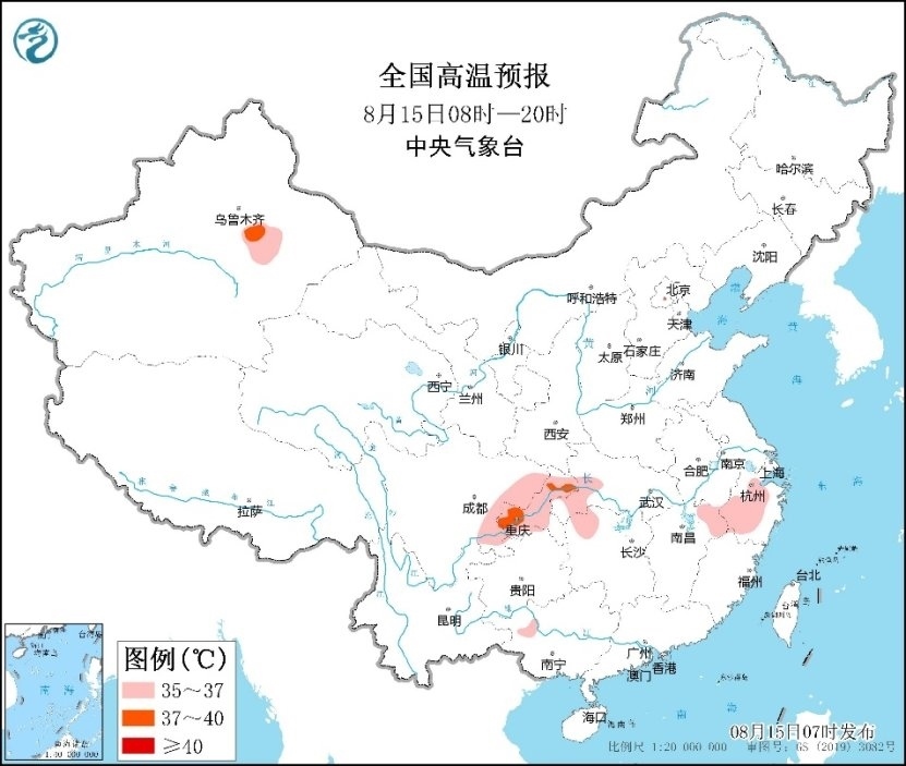 未來三天,江南南部、華南及四川盆地等地部分地區(qū)有分散性強降雨,并伴有強對流天氣,降雨強度大;西北地區(qū)東部、內(nèi)蒙古、華北、東北地區(qū)、黃淮等地有一次降雨過程,青海、甘肅、寧夏、陜西等地部分地區(qū)已出現(xiàn)較強降雨,需防范持續(xù)降雨和局地短時強降雨可能引發(fā)的次生災害。由于副熱帶高壓減弱和降雨鋪展,高溫明顯減弱。高溫主要集中在四川盆地,湖北、湖南、浙江、江蘇等地雖有高溫,但范圍較小。
