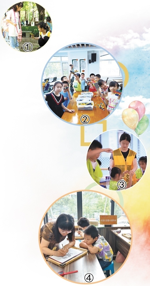 圖①:廣東省佛山市高明區(qū)組織孩子們到森林公園游覽,將研學實踐融入暑期托管。賀林平 劉鳳平攝影報道圖②:吉林省長春市義和社區(qū)暑期托管班里,孩子們在展示手工作品。常 玥攝 圖③:湖北省武漢市一個寫字樓里的暑期托管班,志愿者在照看孩子。共青團武漢市武昌區(qū)委供圖 圖④:江蘇省宜興市振興社區(qū)暑期托管班里,老師給孩子們示范手工刻紙。趙 霞攝