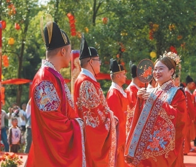 德化人心安徽省蕪湖市南陵縣家發(fā)鎮(zhèn)聯(lián)三村舉行集體婚禮,倡導(dǎo)婚事新辦、儉辦的文明新風(fēng)尚。肖本祥攝(人民視覺)