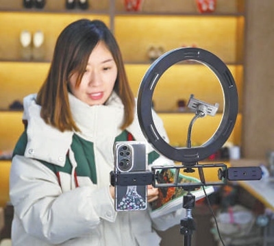 北莊村電商基地工作人員在直播。