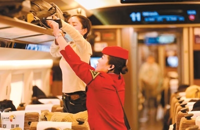 近日,G894次列車(chē)長(zhǎng)張慧在客流高峰期加密車(chē)廂巡查頻次,動(dòng)態(tài)做好行李架整理。