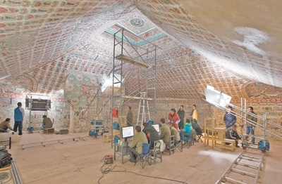 敦煌研究院文物數(shù)字化保護(hù)團(tuán)隊在進(jìn)行數(shù)字化采集。