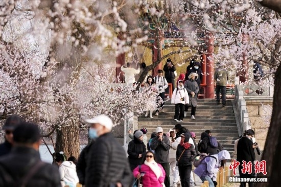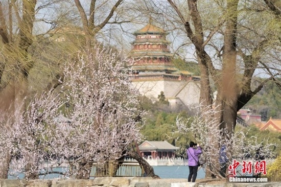 3月17日,游客在北京頤和園西堤賞花。近日,北京頤和園西堤山桃花進(jìn)入最佳觀賞期,吸引眾多游客前往賞花。