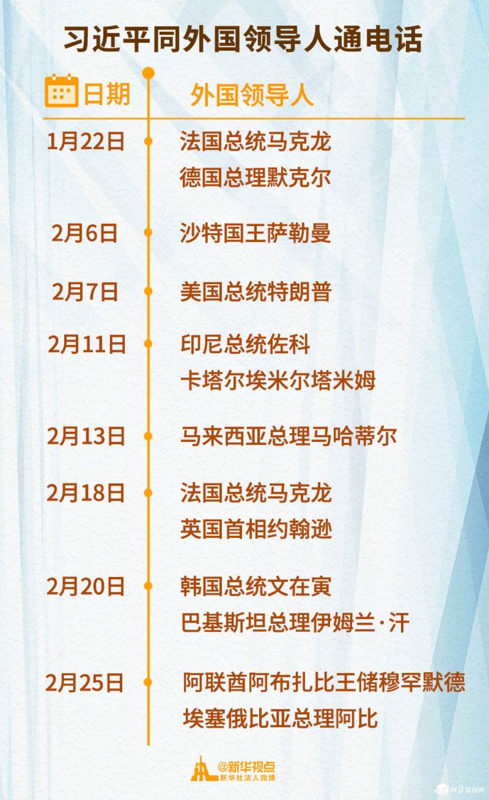 2月以來,習近平主席已先后同11位外國領(lǐng)導人通電話,涉及國家遍及亞洲、歐洲、非洲、美洲等地區(qū)。