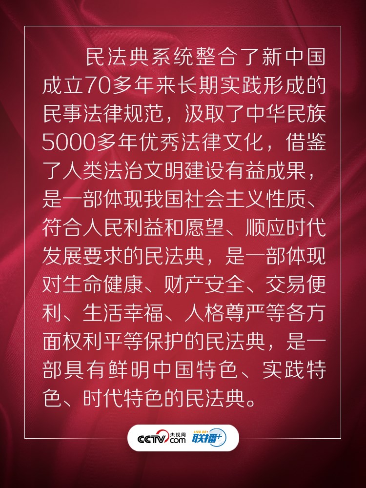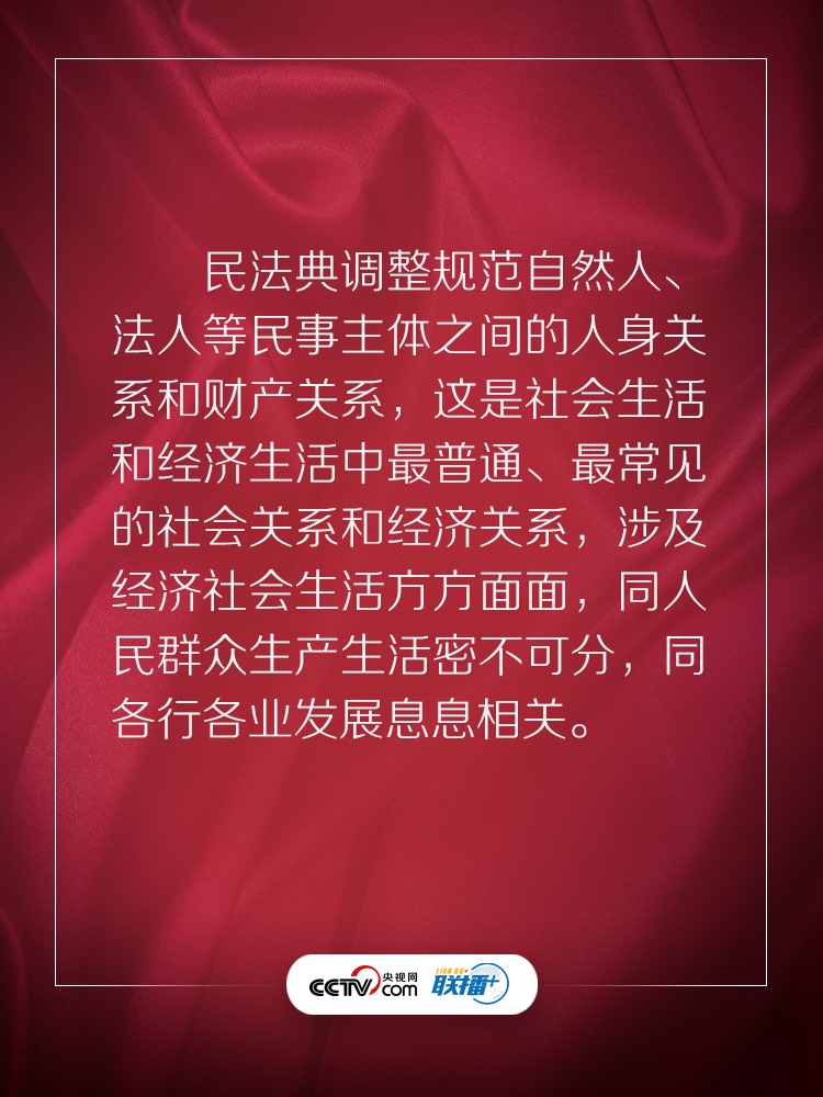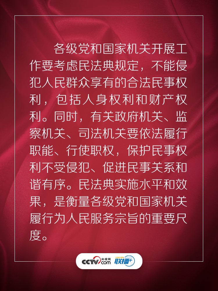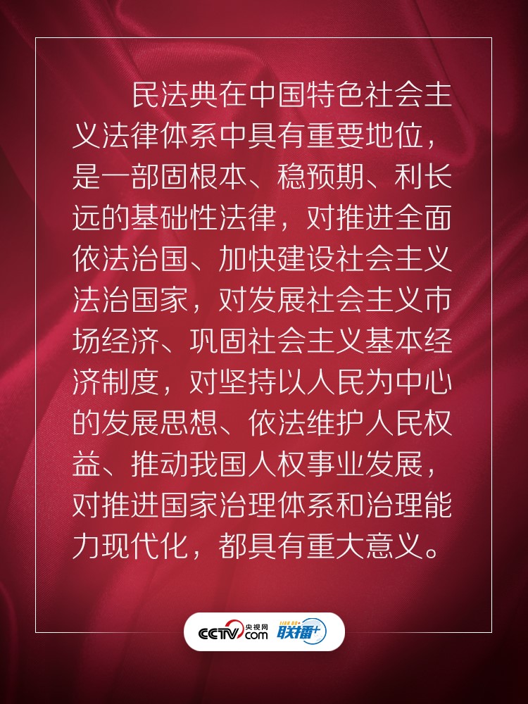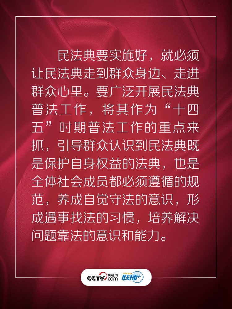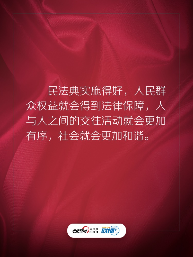 聯(lián)播+ “實(shí)施好民法典是堅(jiān)持以人民為中心、保障人民權(quán)益實(shí)現(xiàn)和發(fā)展的必然要求?!?/p>