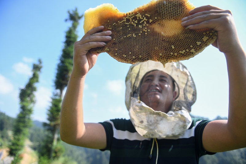 △十八洞村村民龍先蘭學習養(yǎng)蜂技術,因地制宜發(fā)展養(yǎng)蜂產業(yè),逐漸成為養(yǎng)蜂大戶,還收獲了甜蜜的愛情。