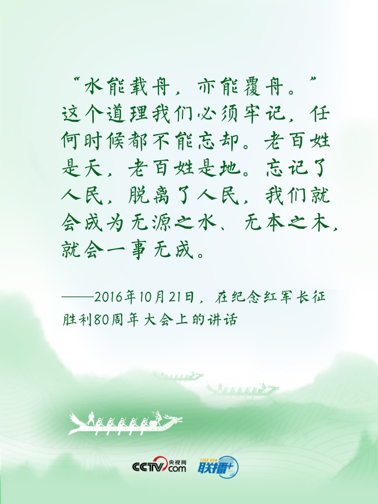 過端午,賽龍舟。龍舟這項傳統(tǒng)運動,象征著中華民族的拼搏、堅韌、團結,承載著深植在民族基因里的愛國主義之魂。“舟”字自古以來在中華傳統(tǒng)文化中都有著深刻寓意?!耙浪兄郏艺\為民”“逆水行舟,不進則退”......習近平總書記曾多次以“舟”為喻闡釋思想,寄情言志。央視網(wǎng)《聯(lián)播+》特進行梳理,讓我們沿著總書記指引的方向,團結奮進,砥礪前行?! ?/p>