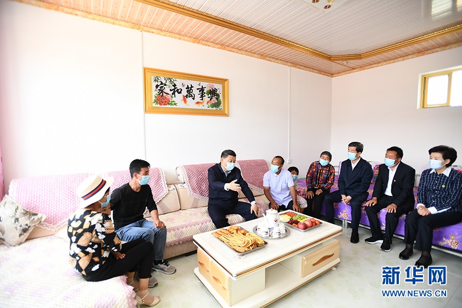 6月8日至10日,習(xí)近平在寧夏考察。這是6月8日下午,習(xí)近平在吳忠市紅寺堡區(qū)紅寺堡鎮(zhèn)弘德村,同回族村民劉克瑞一家親切交流。 新華社記者 謝環(huán)馳