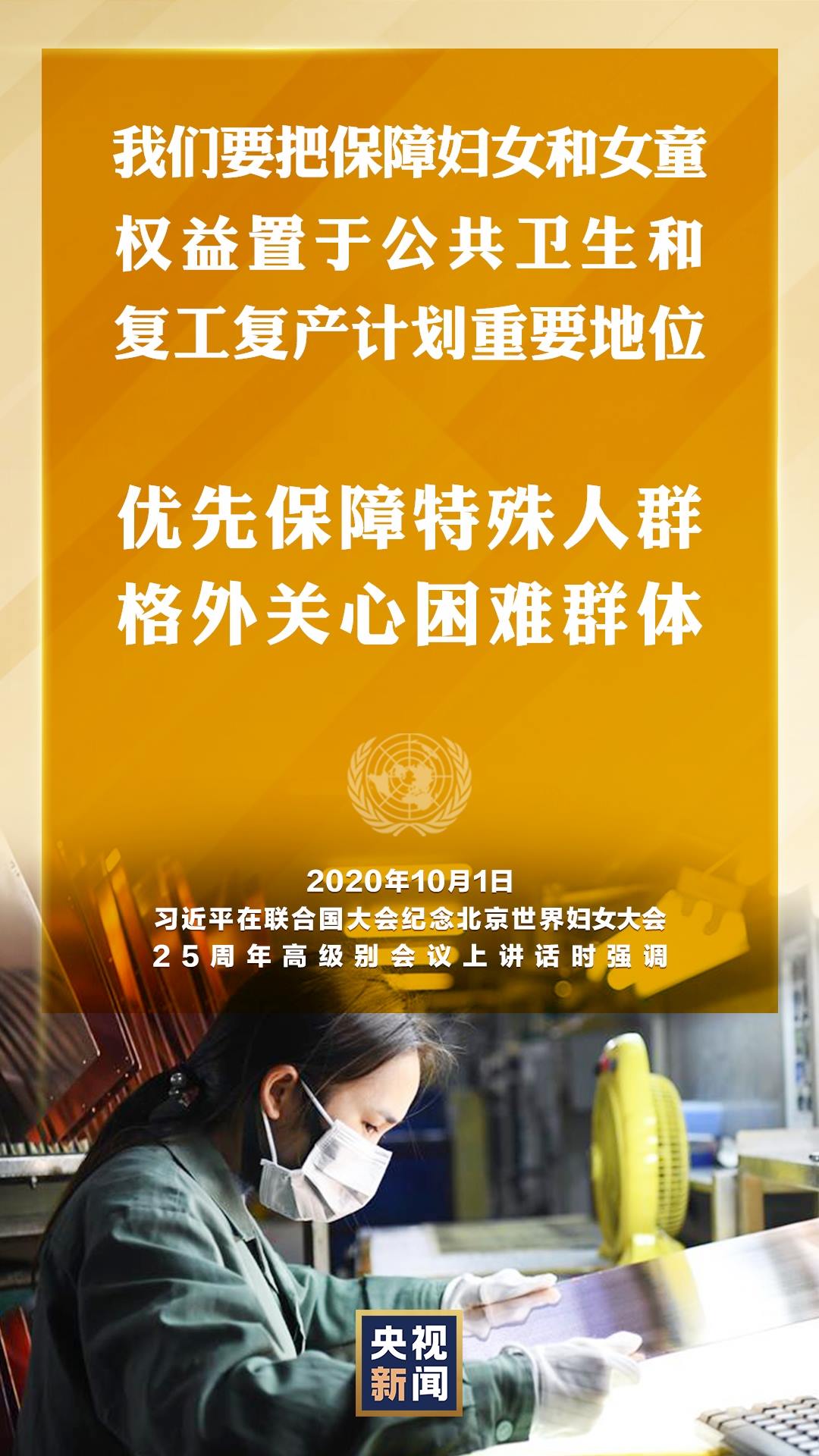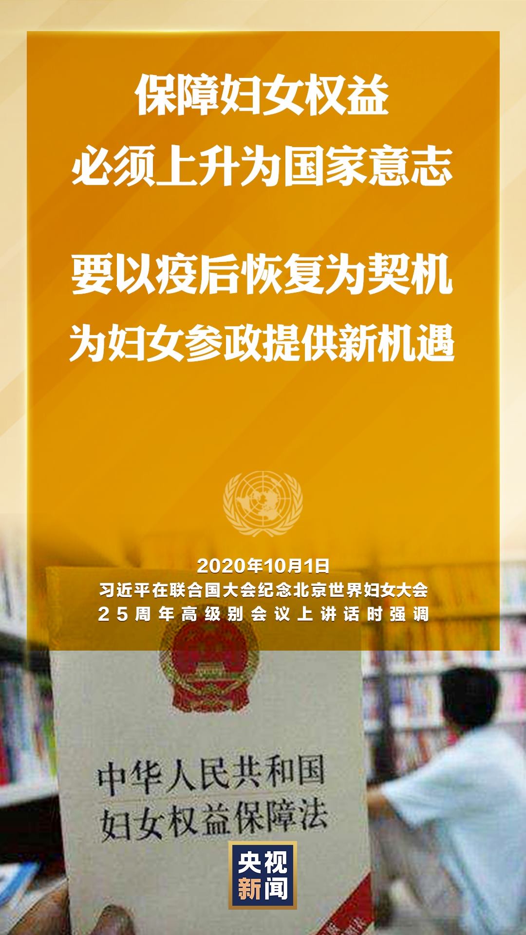國家主席習近平10月1日在聯合國大會紀念北京世界婦女大會25周年高級別會議上通過視頻發(fā)表重要講話。就如何切實保護婦女權益,習近平提出中國主張。