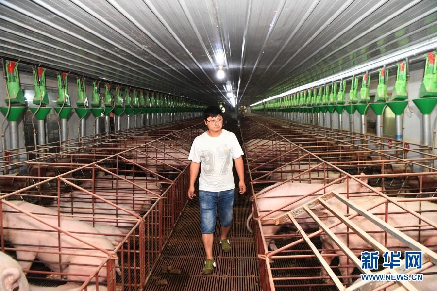 在重慶市萬州區(qū)高梁鎮(zhèn)天鵝村生豬生態(tài)養(yǎng)殖基地,工作人員在查看生豬生長(zhǎng)情況(2020年6月5日攝)。新華社記者 王全超 攝