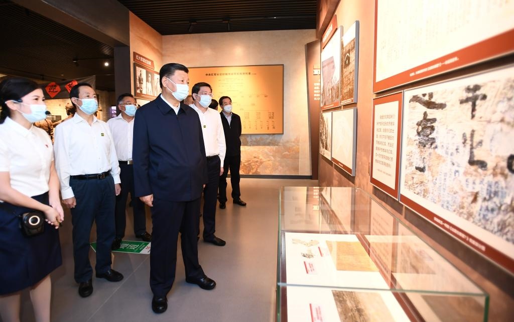 2020年9月16日,習(xí)近平在郴州市汝城縣文明瑤族鄉(xiāng)沙洲瑤族村“半條被子的溫暖”專題陳列館,了解當(dāng)?shù)亻_(kāi)展紅色教育情況。(新華社記者謝環(huán)馳攝)