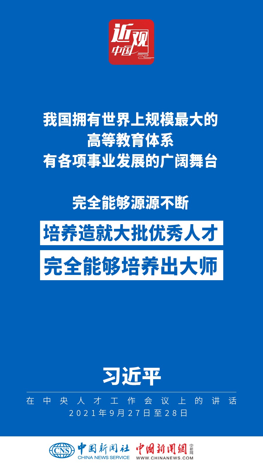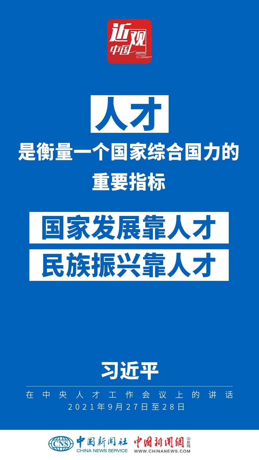 中央人才工作會(huì)議9月27日至28日在北京召開。中共中央總書記、國(guó)家主席、中央軍委主席習(xí)近平出席會(huì)議并發(fā)表重要講話。他強(qiáng)調(diào)——