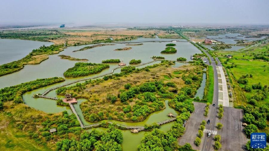 這是5月13日拍攝的山東黃河三角洲國家級自然保護(hù)區(qū)景色(無人機照片)。新華社記者 郭緒雷 攝