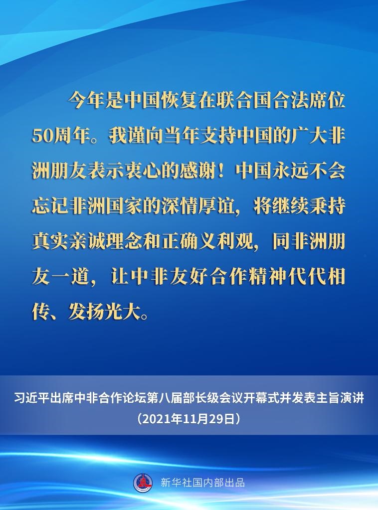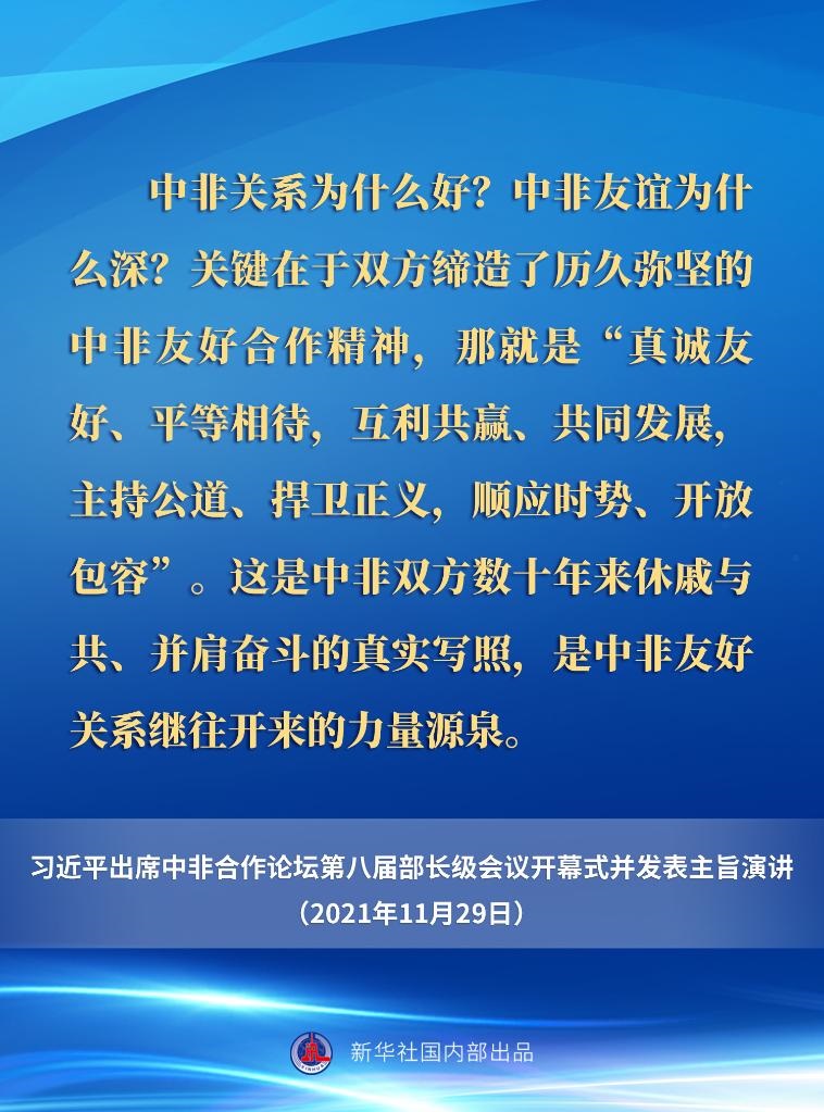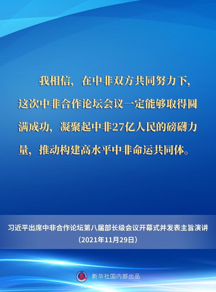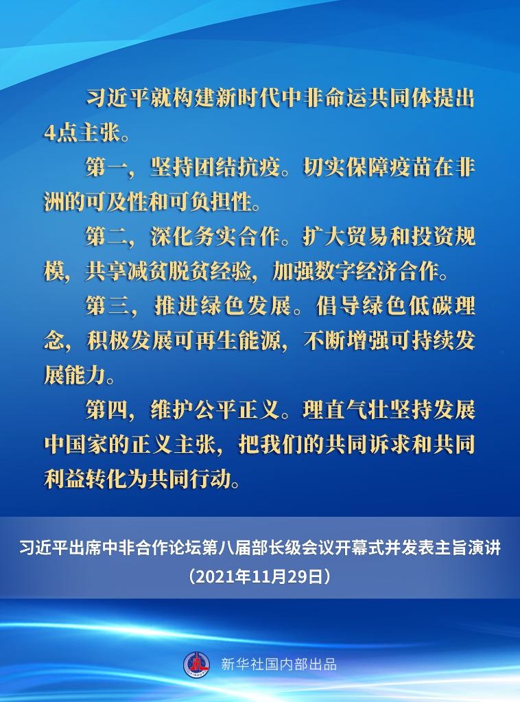 11月29日晚,國家主席習(xí)近平在北京以視頻方式出席中非合作論壇第八屆部長級會(huì)議開幕式并發(fā)表主旨演講。一起來看要點(diǎn)。