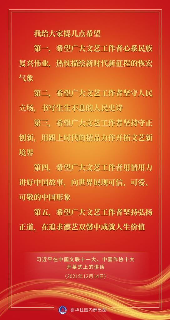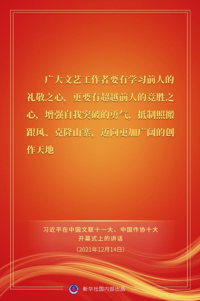 中國(guó)文學(xué)藝術(shù)界聯(lián)合會(huì)第十一次全國(guó)代表大會(huì)、中國(guó)作家協(xié)會(huì)第十次全國(guó)代表大會(huì)14日上午在北京人民大會(huì)堂開幕。習(xí)近平出席大會(huì)并發(fā)表重要講話。戳金句,看要點(diǎn)。