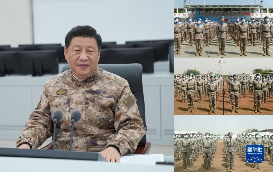隨后,習(xí)近平同中部戰(zhàn)區(qū)海外維和分隊(duì)進(jìn)行視頻通話。來自維和步兵營、工兵分隊(duì)、醫(yī)療分隊(duì)、直升機(jī)分隊(duì)的同志們整齊列隊(duì),依次向習(xí)近平報(bào)告。習(xí)近平向他們,并向我軍正在海外執(zhí)行任務(wù)的全體官兵表示慰問。習(xí)近平強(qiáng)調(diào),要忠實(shí)履行維和使命,為維護(hù)世界和平貢獻(xiàn)更多中國力量,向世界展示中國軍隊(duì)良好形象。維和任務(wù)區(qū)環(huán)境復(fù)雜,要注意加強(qiáng)安全防范,搞好疫情防控。