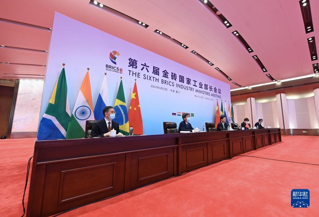 2022年5月23日,第六屆金磚國(guó)家工業(yè)部長(zhǎng)會(huì)議在福建廈門(mén)以視頻會(huì)晤的形式舉行。新華社記者林善傳攝