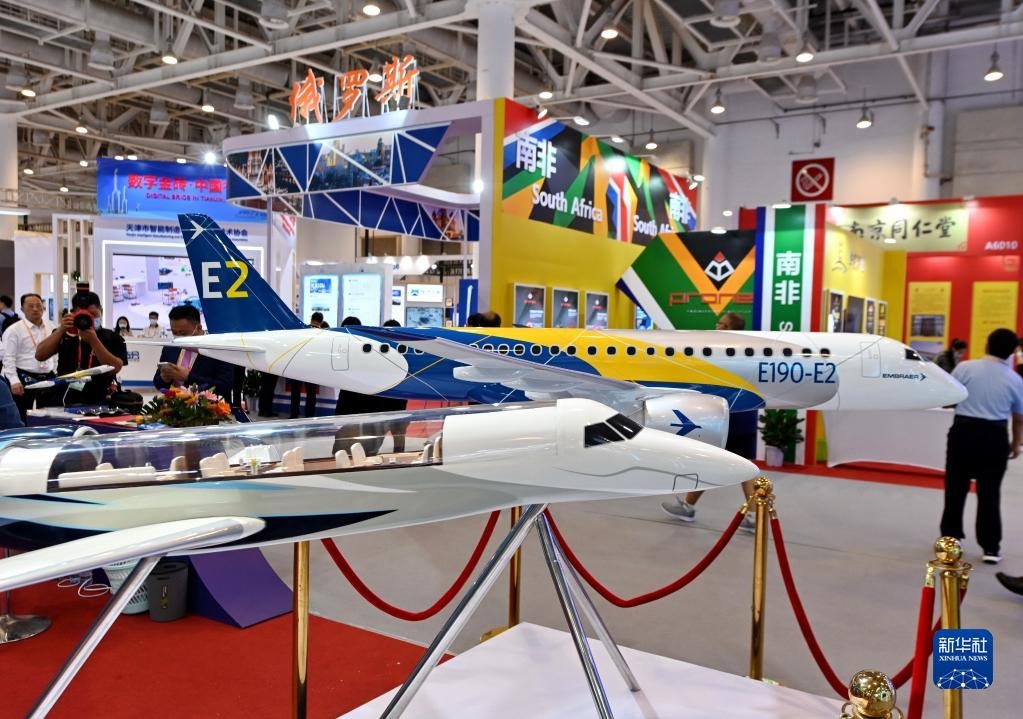 2021年9月8日,參觀者在廈門(mén)開(kāi)幕的金磚國(guó)家新工業(yè)革命展上拍攝飛機(jī)模型。新華社記者林善傳攝