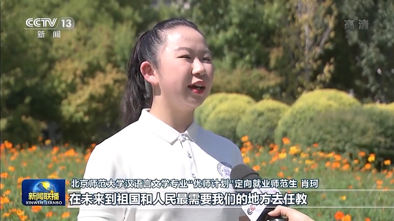 北京師范大學(xué)漢語(yǔ)言文學(xué)專(zhuān)業(yè)“優(yōu)師計(jì)劃”定向就業(yè)師范生肖珂:總書(shū)記勉勵(lì)我們?cè)鲩L(zhǎng)傳道授業(yè)解惑本領(lǐng),在未來(lái)到祖國(guó)和人民最需要我們的地方去任教。我定不負(fù)囑托,努力學(xué)習(xí),在畢業(yè)后回到我的家鄉(xiāng)。