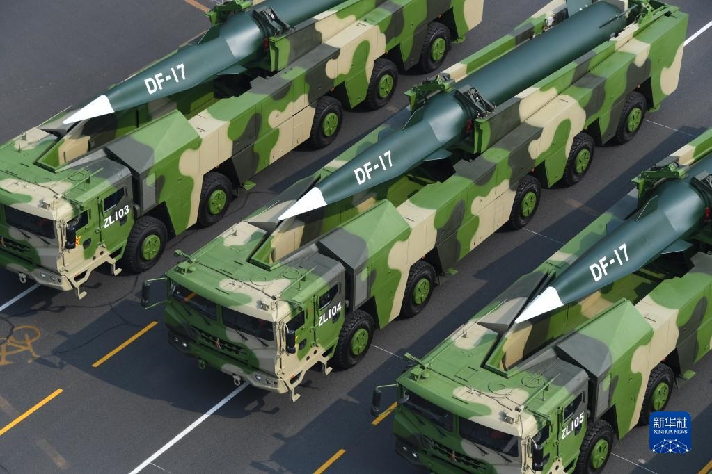 2019年10月1日上午,慶祝中華人民共和國成立70周年大會在北京天安門廣場隆重舉行。這是東風(fēng)-17常規(guī)導(dǎo)彈方隊。新華社記者潘昱龍攝