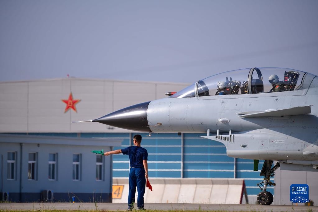 在空軍石家莊飛行學(xué)院某旅機(jī)場,空軍首批三代機(jī)飛行學(xué)員駕駛首批列裝空軍院校的殲-10戰(zhàn)機(jī)準(zhǔn)備起飛(2021年9月10日攝)。新華社發(fā)(李敏攝)