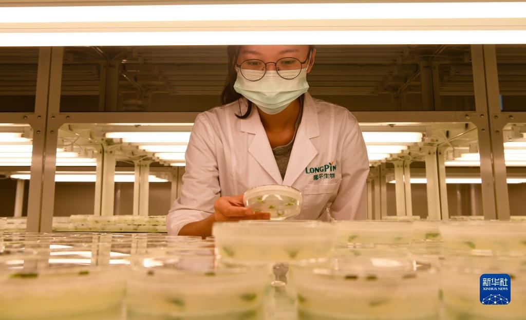 在海南省三亞市崖州灣科技城的崖州灣種子實(shí)驗(yàn)室,隆平生物技術(shù)公司科研人員在開展科研工作(2021年11月25日攝)。新華社記者 楊冠宇 攝