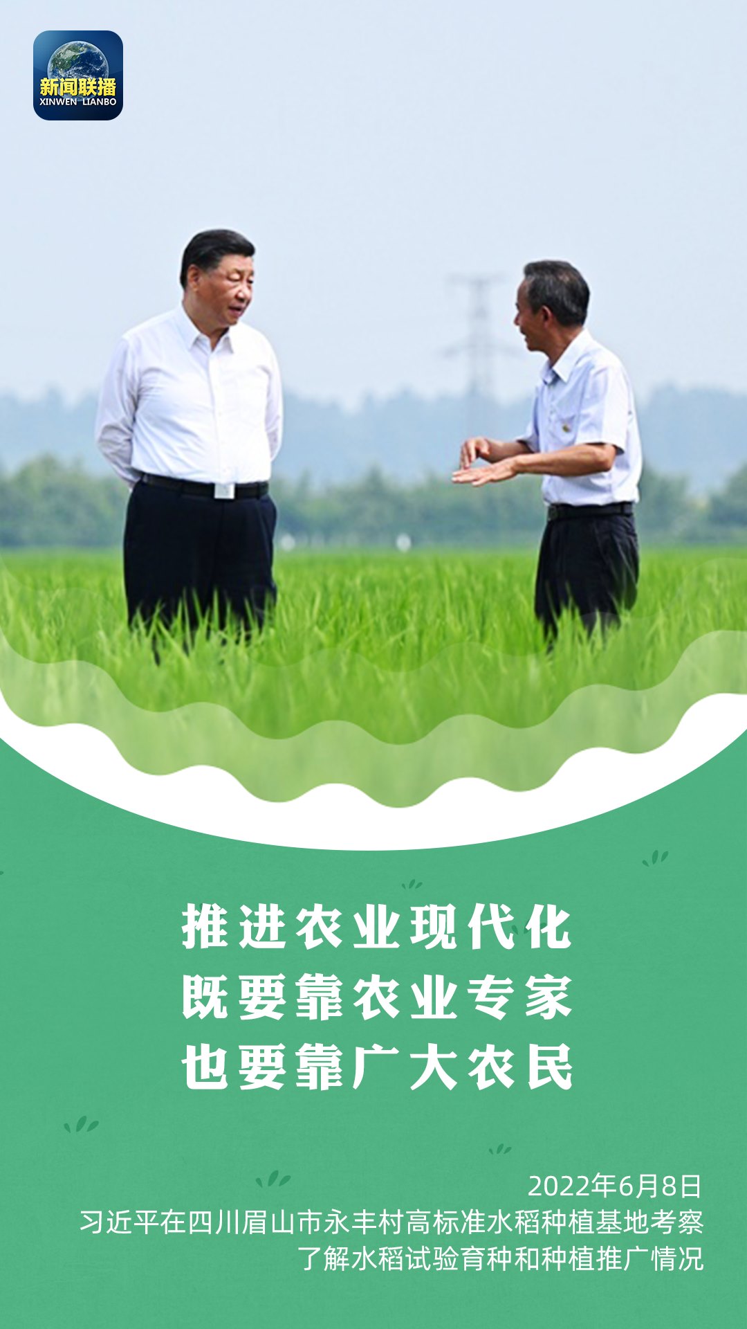 今年6月8日,習(xí)近平總書記在四川永豐村考察,走進(jìn)稻田察看秧苗長勢,向身邊的農(nóng)業(yè)專家、四川農(nóng)業(yè)大學(xué)教授馬均仔細(xì)詢問著秧苗的情況。
