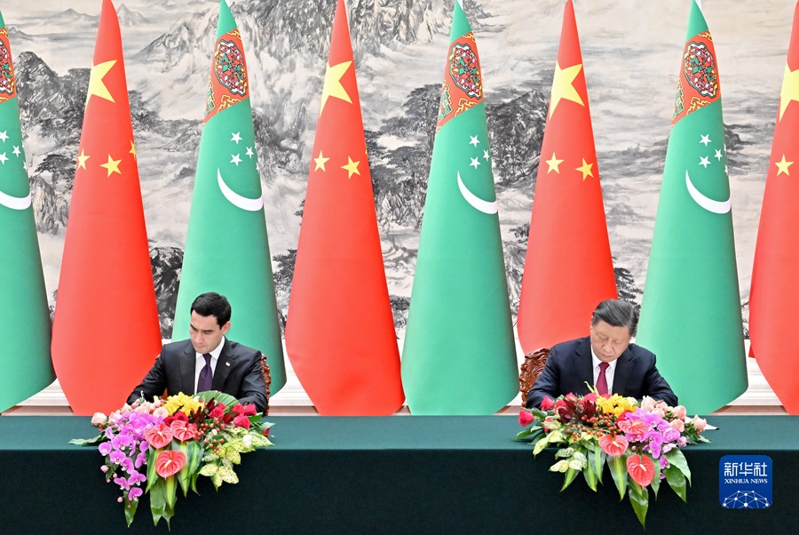 會談后,兩國元首簽署并發(fā)表《中華人民共和國和土庫曼斯坦聯(lián)合聲明》,共同見證簽署“一帶一路”、綠色發(fā)展、數(shù)字經(jīng)濟、衛(wèi)生、文化、體育、新聞媒體、天然氣等領(lǐng)域合作文件。
