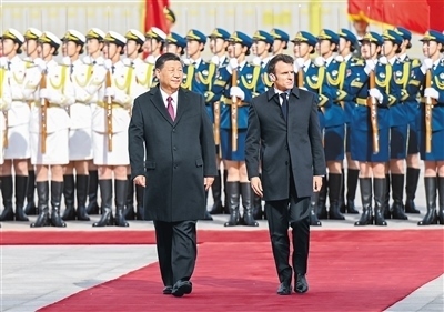 習(xí)近平歡迎馬克龍再次訪華。習(xí)近平指出,當(dāng)今世界正在經(jīng)歷深刻的歷史之變,中法作為聯(lián)合國安理會常任理事國和具有獨立自主傳統(tǒng)的大國,作為世界多極化、國際關(guān)系民主化的堅定推動者,有能力、有責(zé)任超越分歧和束縛,堅持穩(wěn)定、互惠、開拓、向上的中法全面戰(zhàn)略伙伴關(guān)系大方向,踐行真正的多邊主義,維護世界和平、穩(wěn)定、繁榮。
