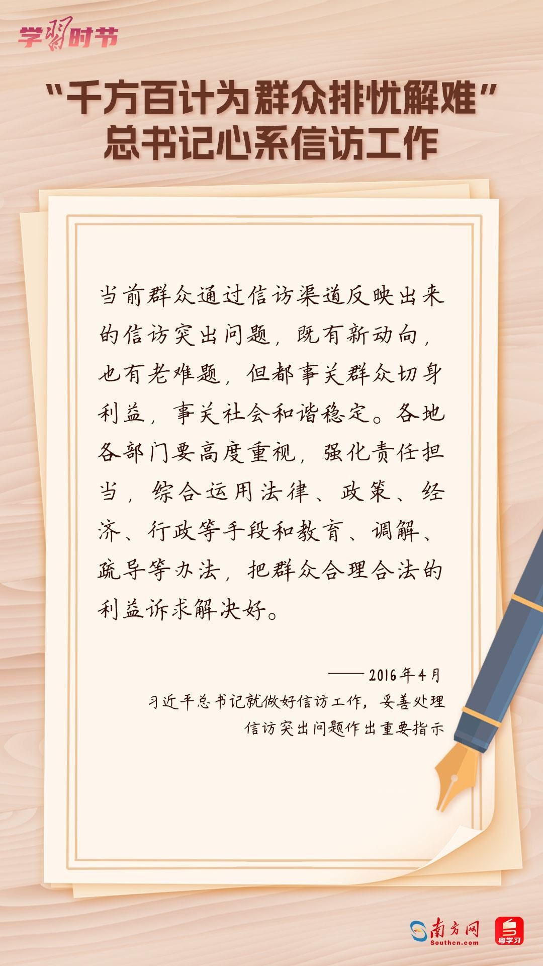 2022年5月1日,中共中央、國(guó)務(wù)院印發(fā)的《信訪工作條例》正式實(shí)施?!缎旁L工作條例》以習(xí)近平新時(shí)代中國(guó)特色社會(huì)主義思想為指導(dǎo),深入貫徹習(xí)近平總書(shū)記關(guān)于加強(qiáng)和改進(jìn)人民信訪工作的重要思想,總結(jié)黨長(zhǎng)期以來(lái)領(lǐng)導(dǎo)和開(kāi)展信訪工作經(jīng)驗(yàn)特別是黨的十八大以來(lái)信訪工作制度改革成果,堅(jiān)持和加強(qiáng)黨對(duì)信訪工作的全面領(lǐng)導(dǎo),理順信訪工作體制機(jī)制,是新時(shí)代信訪工作的基本遵循。今年5月1日是《信訪工作條例》實(shí)施一周年,“學(xué)習(xí)時(shí)節(jié)”整理摘錄習(xí)近平總書(shū)記關(guān)于信訪工作的重要講話和重要指示批示,與您一同學(xué)習(xí)。