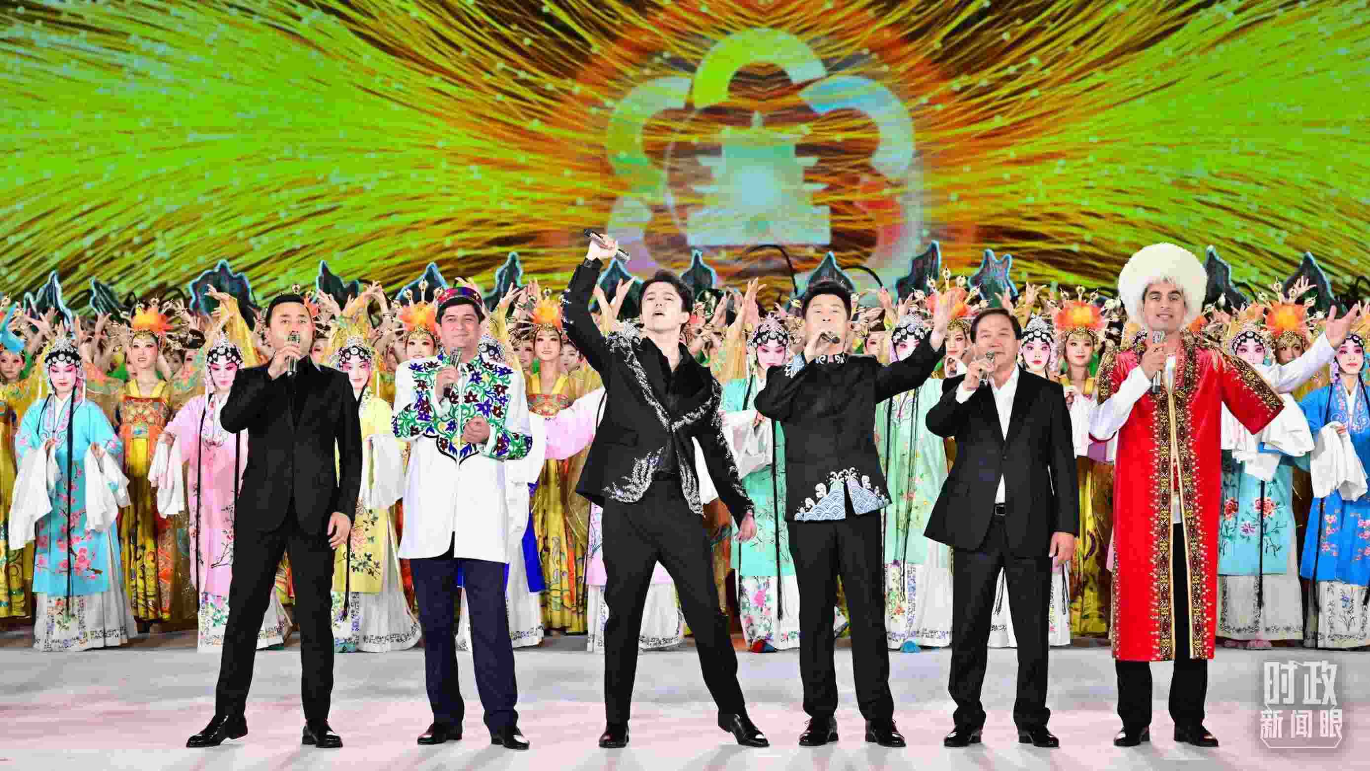 △來自中國和中亞五國的歌手聯(lián)袂演唱《美美與共》。(總臺記者孫楠拍攝)