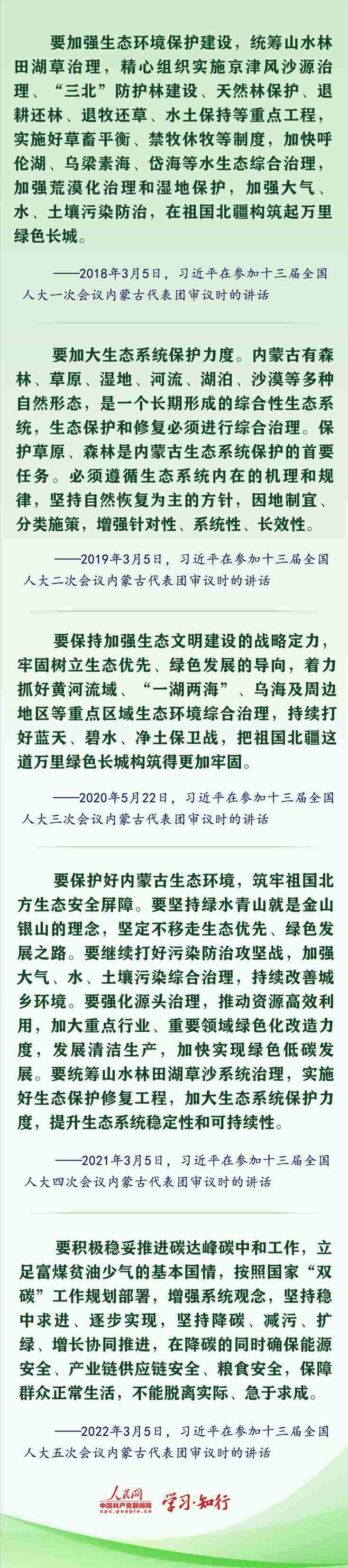2019年3月,也是在內(nèi)蒙古代表團(tuán),總書記曾談到,內(nèi)蒙古有森林、草原、濕地、河流、湖泊、沙漠等多種自然形態(tài),是一個(gè)長(zhǎng)期形成的綜合性生態(tài)系統(tǒng),生態(tài)保護(hù)和修復(fù)必須進(jìn)行綜合治理。