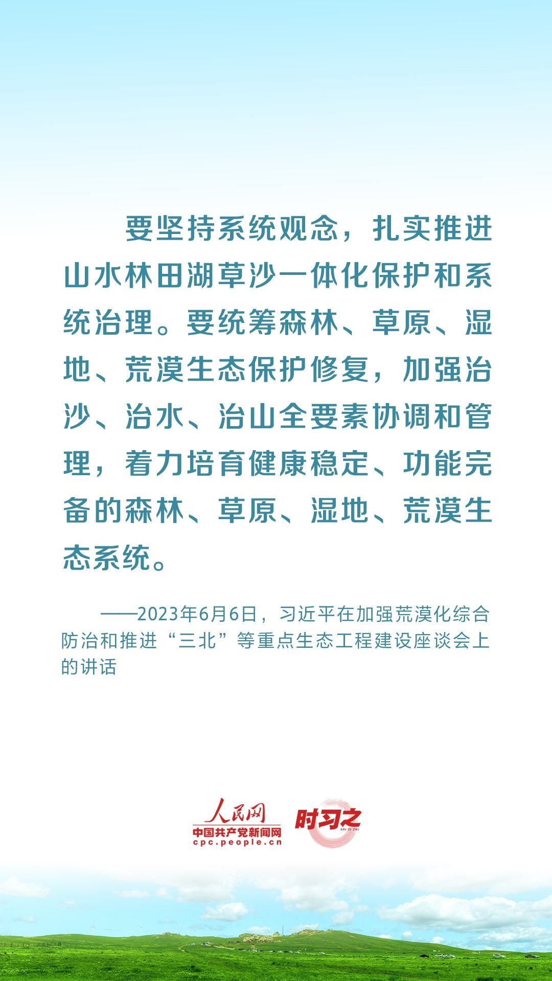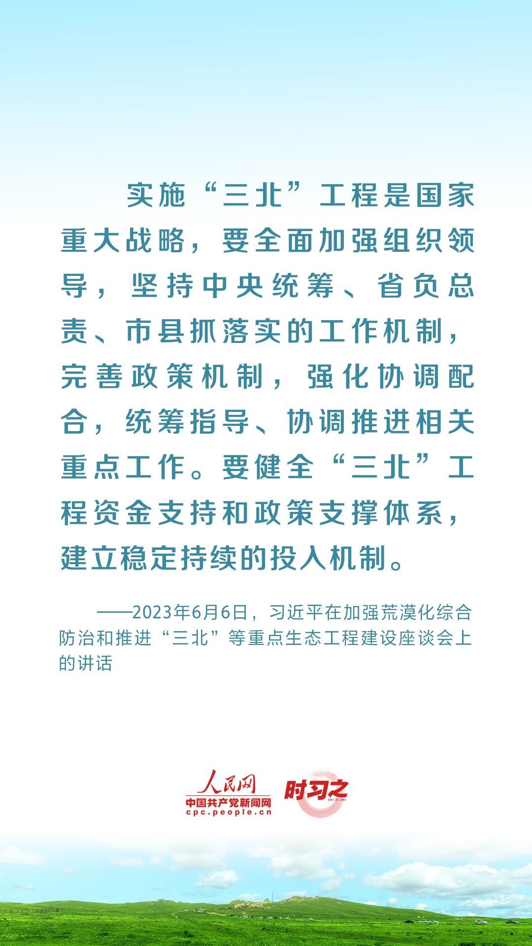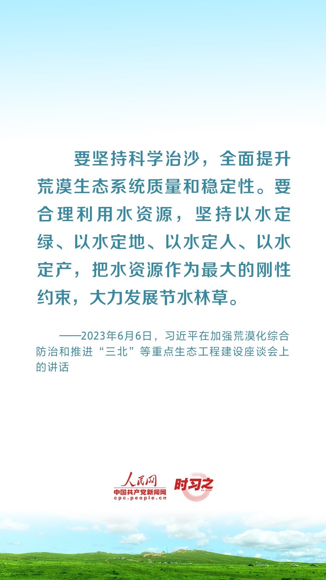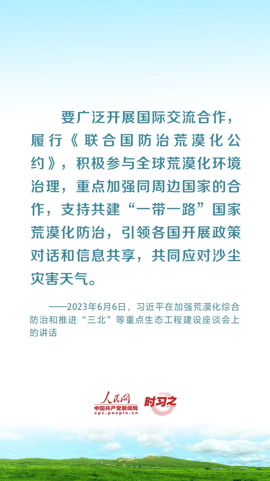 2023年6月5日至6日,中共中央總書記、國家主席、中央軍委主席習(xí)近平在內(nèi)蒙古自治區(qū)巴彥淖爾市考察,主持召開加強(qiáng)荒漠化綜合防治和推進(jìn)“三北”等重點(diǎn)生態(tài)工程建設(shè)座談會并發(fā)表重要講話。座談會上,習(xí)近平對走好中國特色防沙治沙道路提出工作要求。