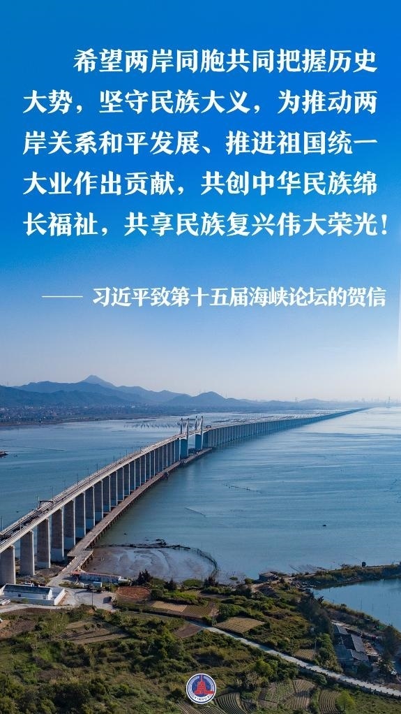 6月17日,中共中央總書記、國家主席習近平向第十五屆海峽論壇致賀信。