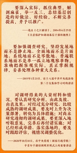 在全黨大興調查研究之風的今天,讓我們重溫總書記的有關論述,跟著總書記學習調查研究。