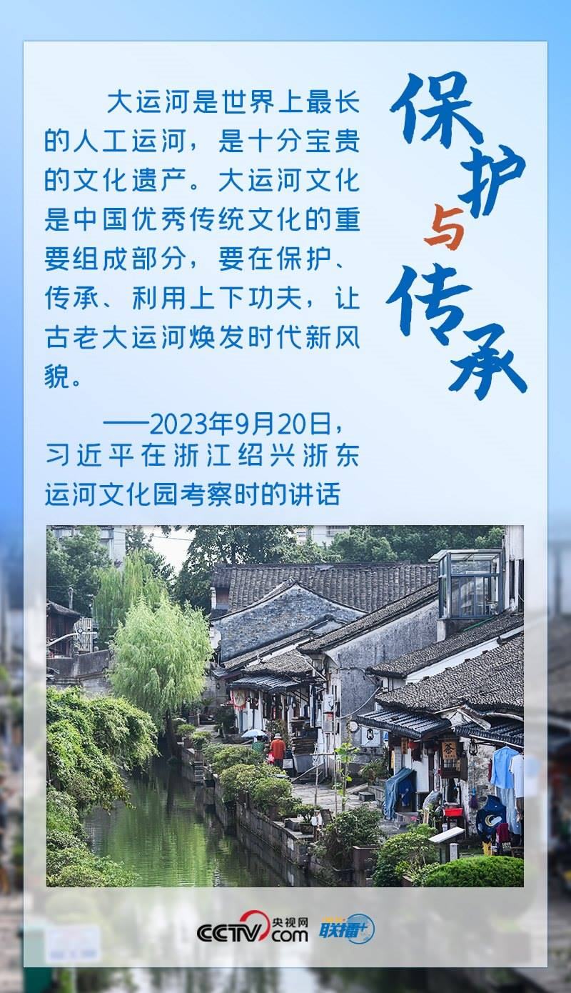 習(xí)近平總書(shū)記一直心系大運(yùn)河保護(hù)、傳承與利用工作。2017年,他對(duì)建設(shè)大運(yùn)河文化帶作出重要指示,明確指出“要統(tǒng)籌保護(hù)好、傳承好、利用好”大運(yùn)河。此次考察,總書(shū)記再次強(qiáng)調(diào)“要在保護(hù)、傳承、利用上下功夫”。保護(hù)、傳承、利用是辯證統(tǒng)一的,保護(hù)是前提,利用是過(guò)程,傳承發(fā)展是目的,三者相互依存,方能彰顯價(jià)值。文化遺產(chǎn)是先人創(chuàng)造并遺留下來(lái)的寶貴財(cái)富,是一個(gè)國(guó)家和民族文明延續(xù)的內(nèi)在脈絡(luò)與創(chuàng)新創(chuàng)造的動(dòng)力源泉。在保護(hù)的基礎(chǔ)上研究利用好這些人類(lèi)文明的瑰寶,才能更好做到傳承發(fā)展。