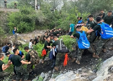 8月5日夜間,搶險(xiǎn)人員完成北京房山15公里的軍紅路道路搶修疏通任務(wù),為大安山鄉(xiāng)及周邊1萬余名群眾打通了“生命通道”。