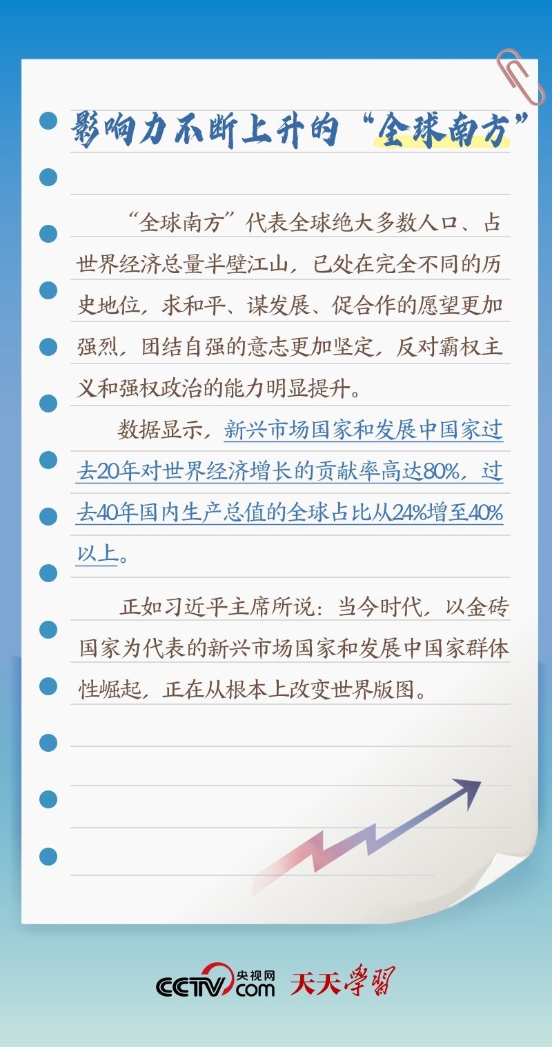 此次出訪,習(xí)近平主席在向約翰內(nèi)斯堡金磚國(guó)家工商論壇閉幕式發(fā)表致辭、同南非總統(tǒng)拉馬福薩共同會(huì)見(jiàn)記者等場(chǎng)合均提及“全球南方”。什么是“全球南方”?“全球南方”國(guó)家有何共性?中國(guó)為何是“全球南方”的天然成員?跟著央視網(wǎng)《天天學(xué)習(xí)》一起了解。