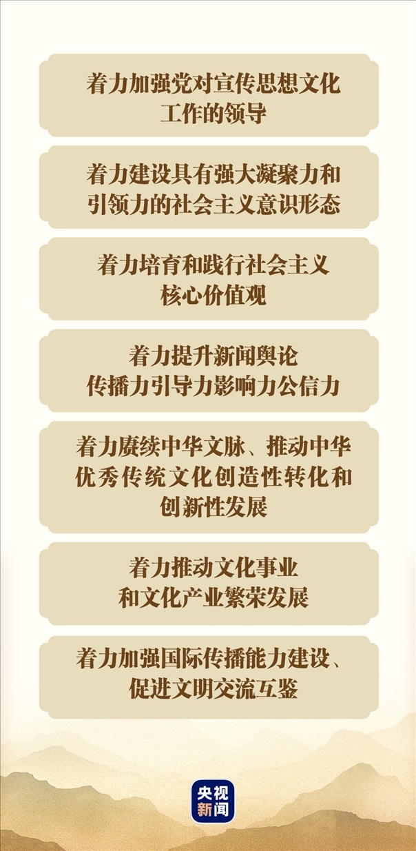 從2018年8月全國宣傳思想工作會(huì)議以“九個(gè)堅(jiān)持”概括宣傳思想工作的規(guī)律性認(rèn)識(shí),到黨的二十大從五個(gè)方面重點(diǎn)部署文化建設(shè)工作,再到“七個(gè)著力”的重要要求……習(xí)近平總書記對(duì)于宣傳思想文化工作作出的一系列重要批示指示,既有認(rèn)識(shí)論又有方法論,既有宏觀層面的整體指導(dǎo),又有具體層面的實(shí)踐路徑。