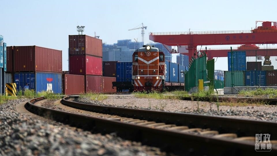 △從浙江義烏開(kāi)出的中歐班列。(總臺(tái)國(guó)廣記者李晉拍攝)