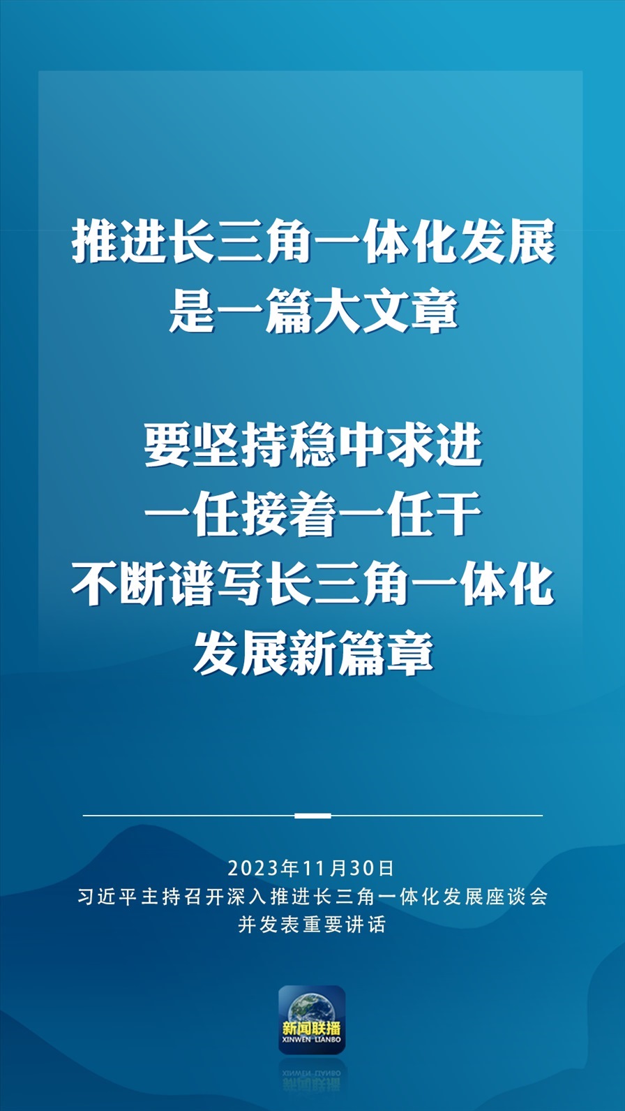 習(xí)近平強(qiáng)調(diào),要完整、準(zhǔn)確、全面貫徹新發(fā)展理念,緊扣一體化和高質(zhì)量這兩個關(guān)鍵詞,樹立全球視野和戰(zhàn)略思維,堅(jiān)定不移深化改革、擴(kuò)大高水平開放,統(tǒng)籌科技創(chuàng)新和產(chǎn)業(yè)創(chuàng)新,統(tǒng)籌龍頭帶動和各揚(yáng)所長,統(tǒng)籌硬件聯(lián)通和機(jī)制協(xié)同,統(tǒng)籌生態(tài)環(huán)保和經(jīng)濟(jì)發(fā)展,在推進(jìn)共同富裕上先行示范,在建設(shè)中華民族現(xiàn)代文明上積極探索,推動長三角一體化發(fā)展取得新的重大突破,在中國式現(xiàn)代化中走在前列,更好發(fā)揮先行探路、引領(lǐng)示范、輻射帶動作用。