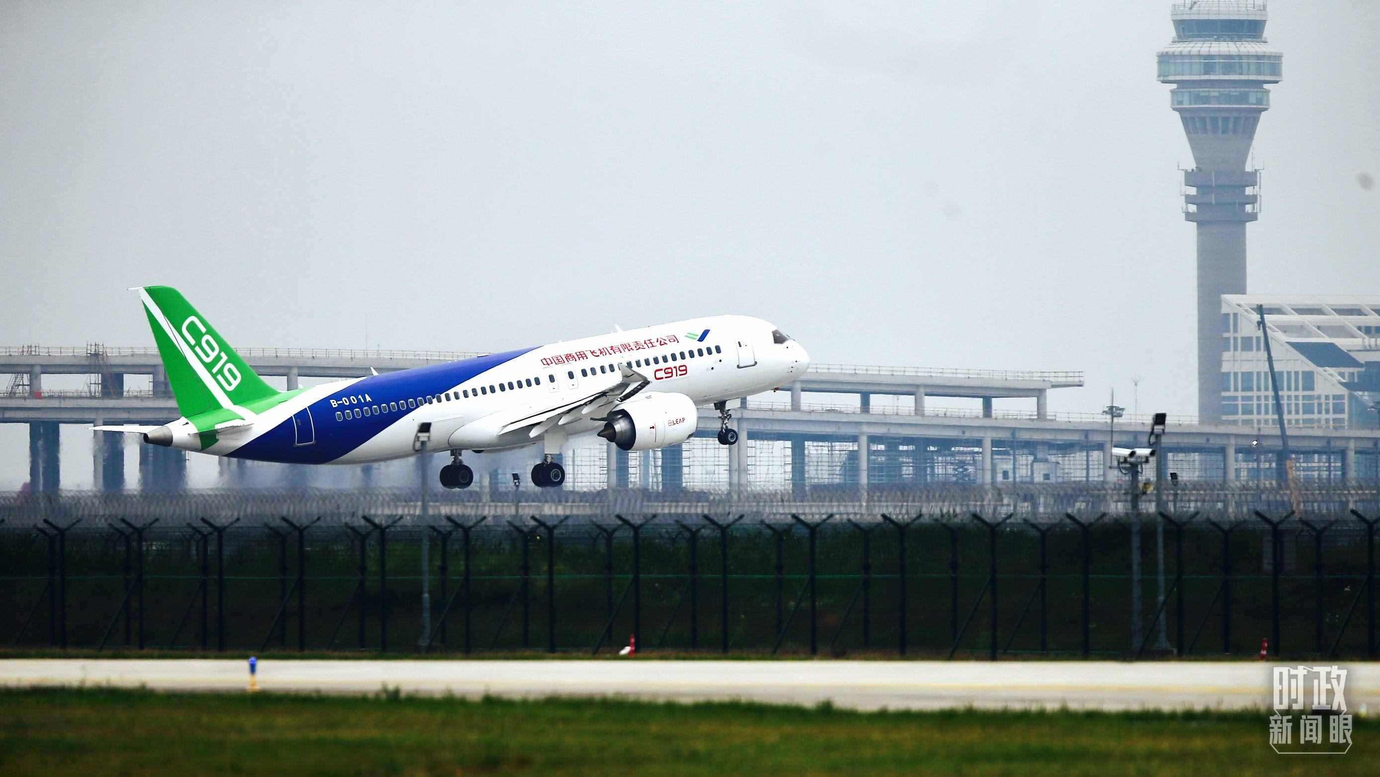△2017年5月5日,國產(chǎn)大飛機(jī)C919成功首飛。(總臺(tái)國廣記者李晉拍攝)