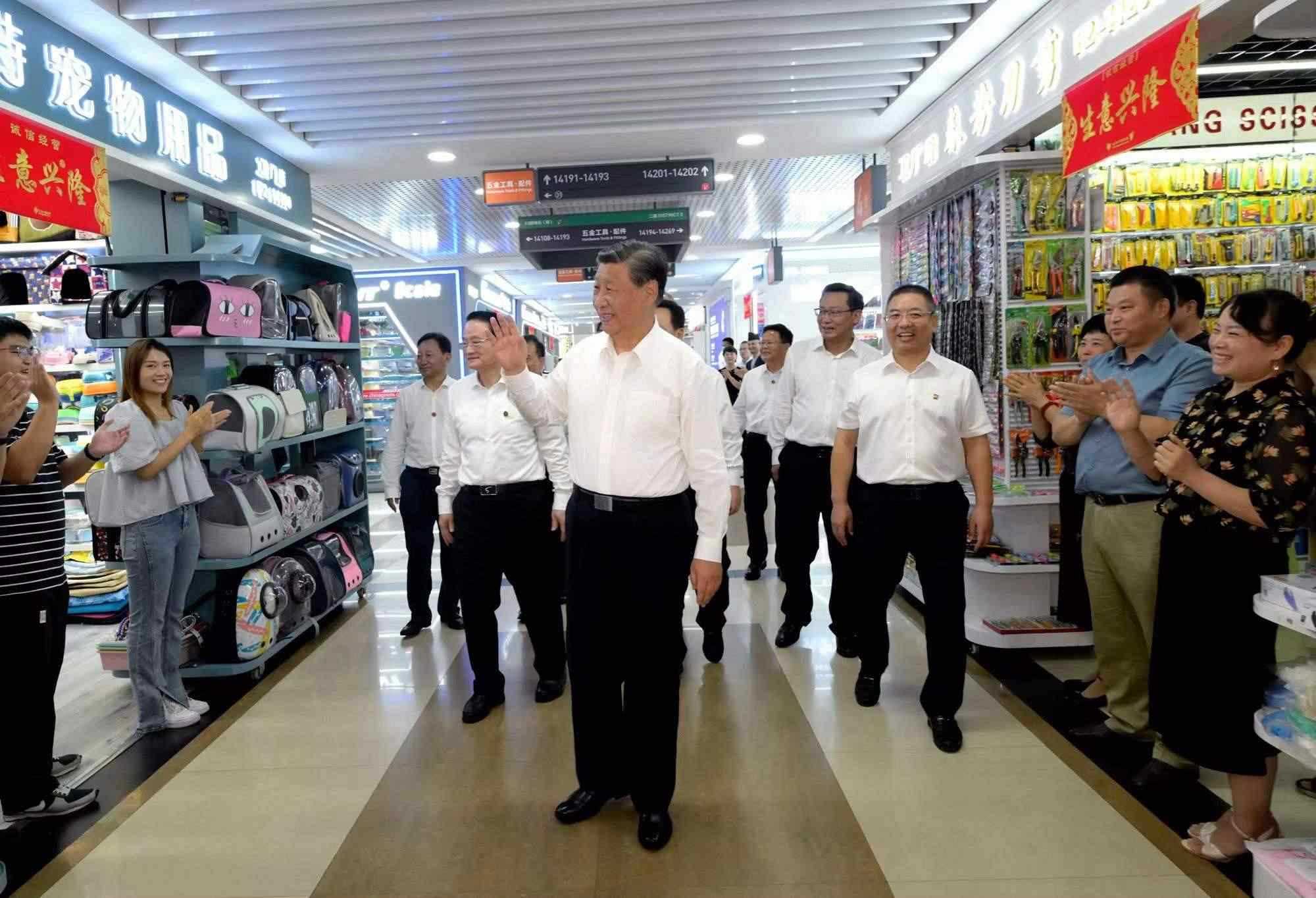 △2023年9月20日,習(xí)近平總書記在浙江義烏國際商貿(mào)城考察時,同商戶親切交流。