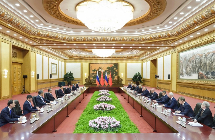 習(xí)近平強(qiáng)調(diào),中國經(jīng)濟(jì)韌性強(qiáng)、潛力大、回旋余地廣、長期向好的基本面沒有改變。中國堅(jiān)定推動高質(zhì)量發(fā)展,推進(jìn)高水平對外開放,將為包括俄羅斯在內(nèi)的各國發(fā)展提供新機(jī)遇。雙方要充分發(fā)揮政治互信、經(jīng)濟(jì)互補(bǔ)、設(shè)施互聯(lián)、民心互通優(yōu)勢,不斷豐富合作內(nèi)涵,深化經(jīng)貿(mào)、能源、互聯(lián)互通等領(lǐng)域合作,共同維護(hù)產(chǎn)業(yè)鏈供應(yīng)鏈安全穩(wěn)定。雙方要辦好明后兩年中俄文化年,多設(shè)計(jì)、多開展豐富多彩的人文交流活動,夯實(shí)兩國世代友好的社會和民意基礎(chǔ)。