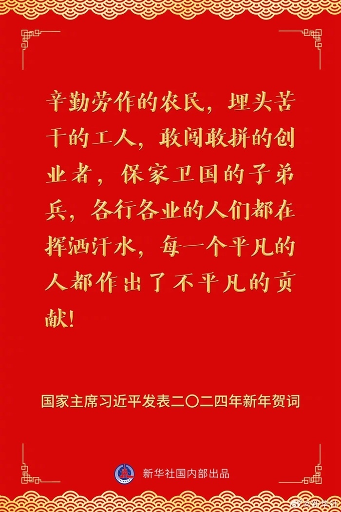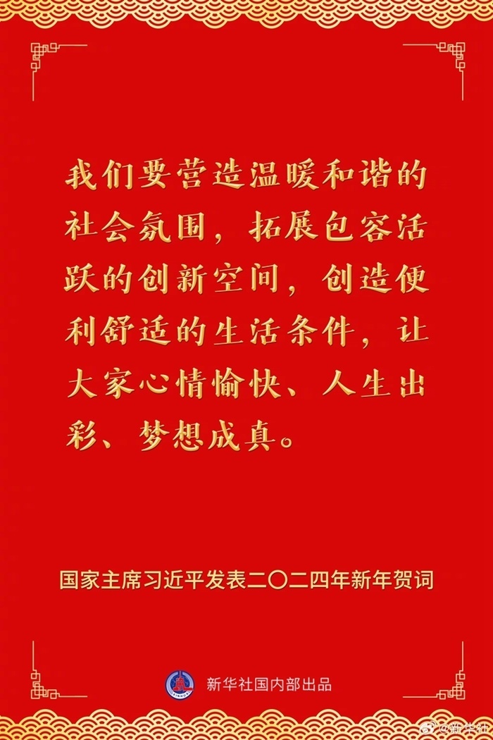 國(guó)家主席習(xí)近平發(fā)表二〇二四年新年賀詞,一起來(lái)看金句。